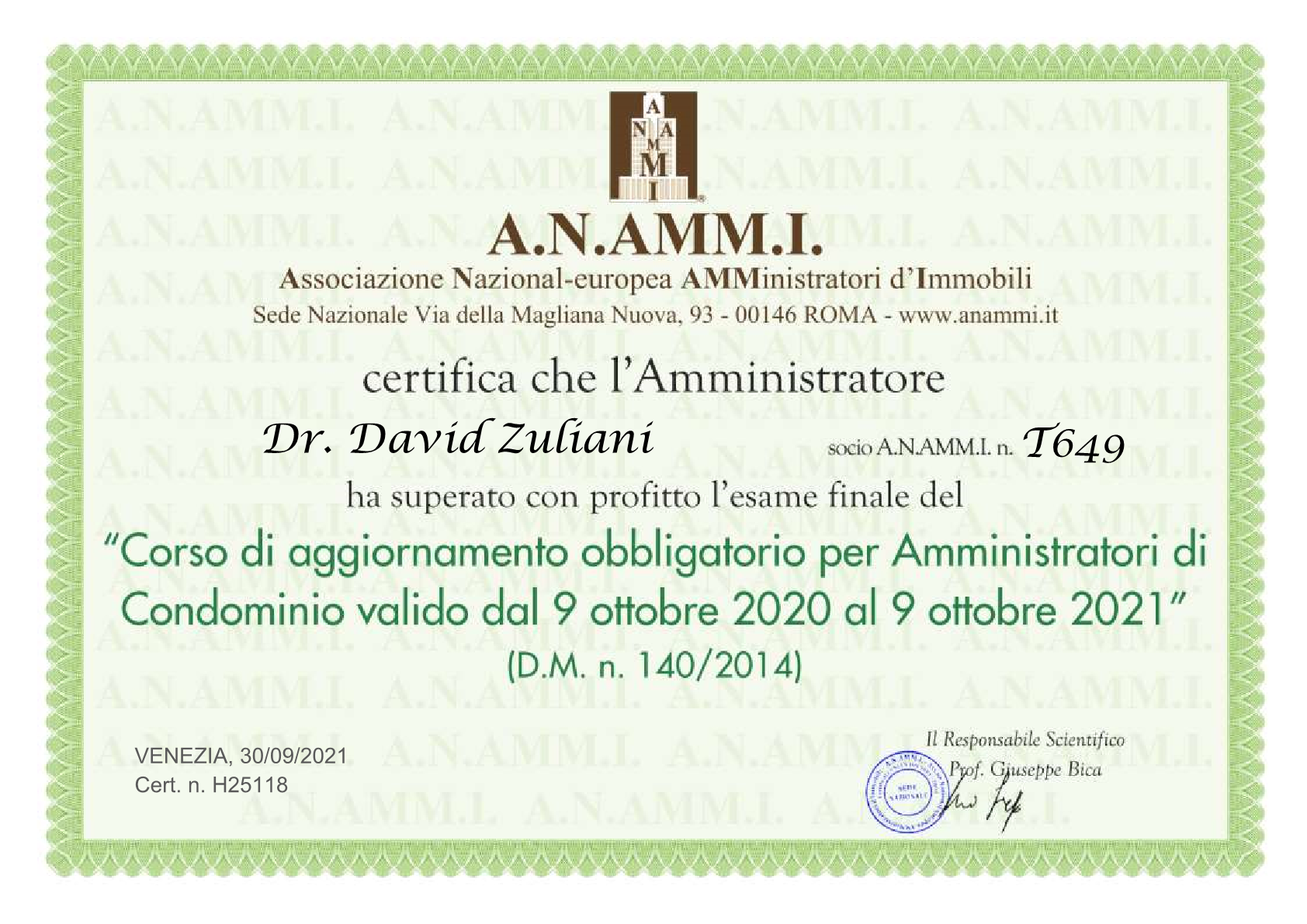 A garanzia dei condòmini: attestati di iscrizione ANAMMI professionale per l’anno 2024.